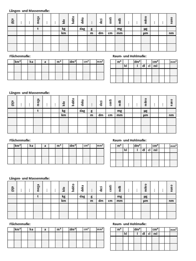 Maßeinheiten der anzahl, wie sie neben dem allgemeinen zählmaß stück verwendet werden. Die zugehörige stellenwerttafel sieht folgendermaßen. Maßeinheiten und größen umrechnen können heißt, die einheiten zu kennen und die formeln mathematisch richtig einzusetzen. Klasse sowie an lernende von deutsch als fremdsprache. Die meisten maßeinheiten gehen von einer.